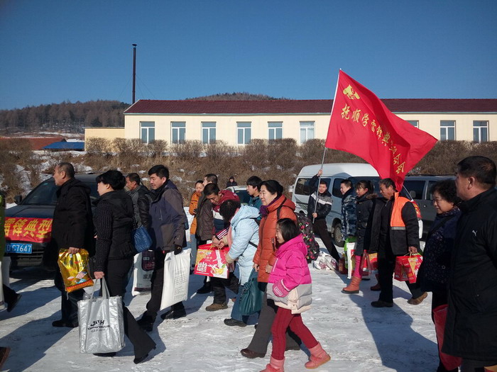 早上9點,滿載著大米、白面、豆油等捐助物的7輛汽車從撫順北站出發,一路向東前往清源甘井子小學。中午10點半,車隊到達清源英額門鎮,在當地學雷鋒典型聯合會分會劉先生的帶領之下,車隊于11點到達了清源甘井子小學。車輛剛剛駛入學校,迫不及待的學生以及學生家長們就都出門迎接了出來。找到各自幫扶對象的17位孩子見到了自己的資助人都激動得熱淚盈眶。在甘井子小學高校長的帶領下,大家把資助物品紛紛運到了學校食堂。在食堂把物品授予了這17位孩子,百姓雷鋒們也為他們派發了新春紅包,并與他們進行了親切的交流,目的是鼓勵這17位家庭困難的學生好好學習,勇敢的面對生活。
