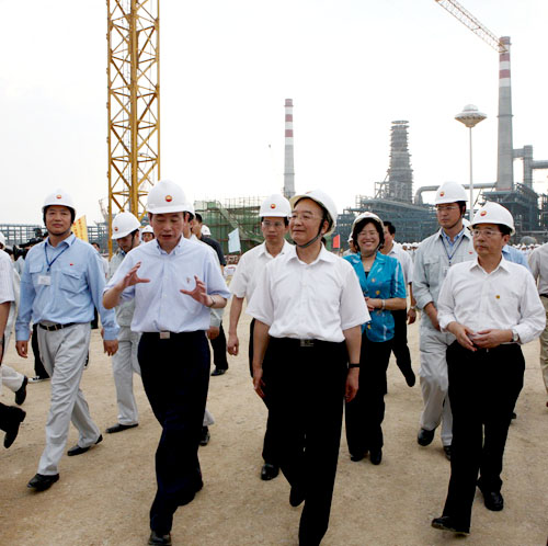 溫家寶到中油廣西石化施工現場視察