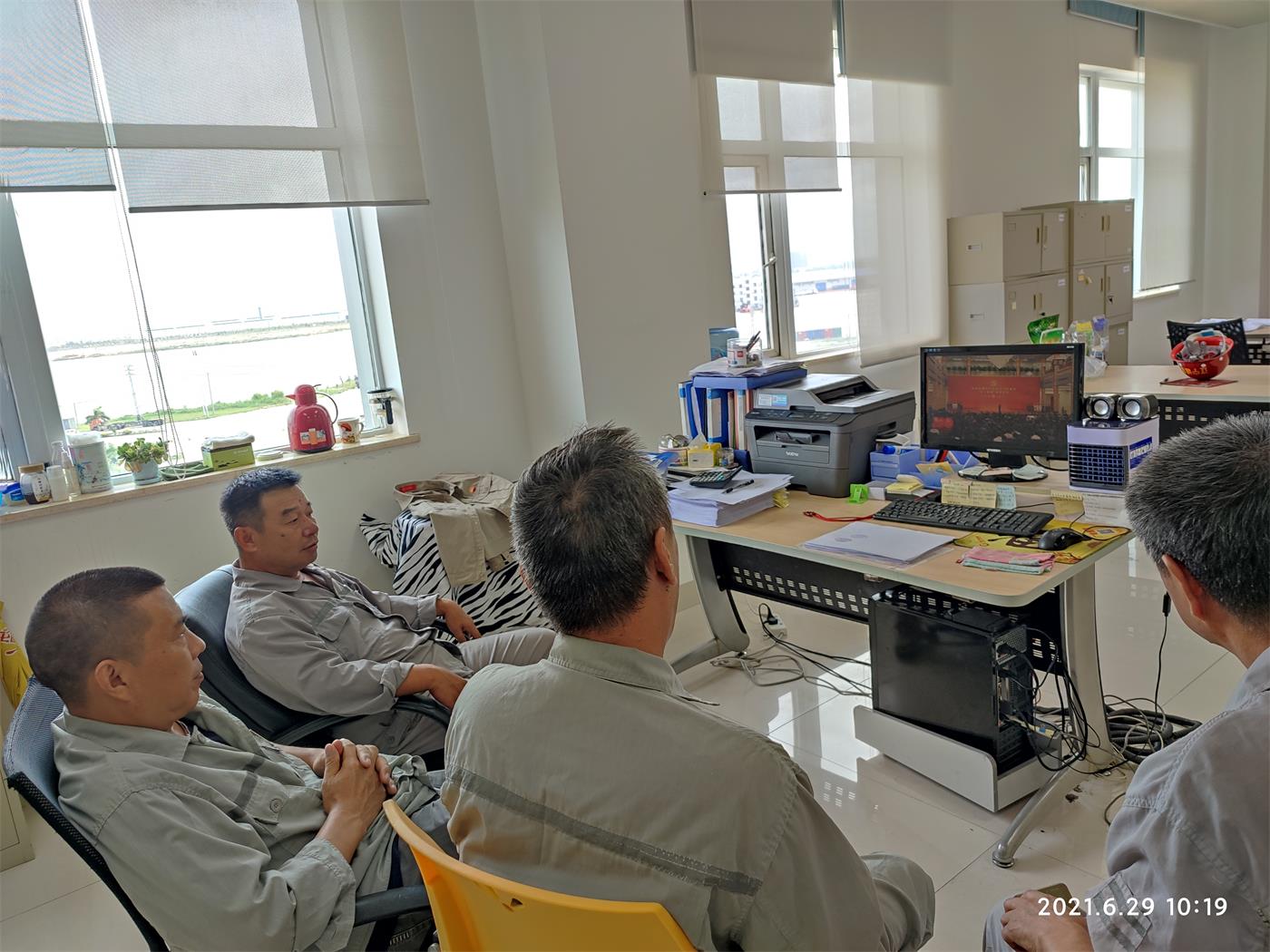 經中共中央批準,“七一勛章”頒授儀式將于6月29日上午10時在人民大會堂隆重舉行。中共中央總書記、國家主席、中央軍委主席習近平將首次頒授“七一勛章”并發表重要講話。值此七一來臨之際,遼寧誠實黨委號召所有黨支部、項目部由總監或項目負責人組織在線進行觀看。截止到發稿時間為止,除企業機關外,廣西項目部在任軍經理的帶領下也在線第一時間觀看了頒授儀式。習總書記說:“七一勛章”的獲得者就是各條戰線中黨員的杰出代表,在他們身上,生動體現了中國共產黨人堅定信念、踐行宗旨、拼搏奉獻、廉潔奉公的高尚品質和崇高精神。新時代需要英雄,希望廣大黨員、干部牢記黨的性質宗旨,牢記黨的初心使命,不懈奮斗,永遠奮斗,在全面建設社會主義現代化國家新征程上奮勇前進!
