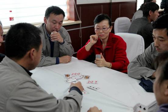 公司員工在進行撲克比賽