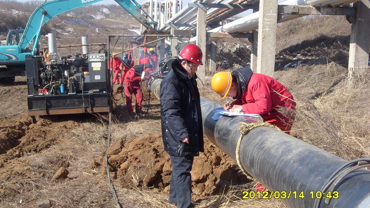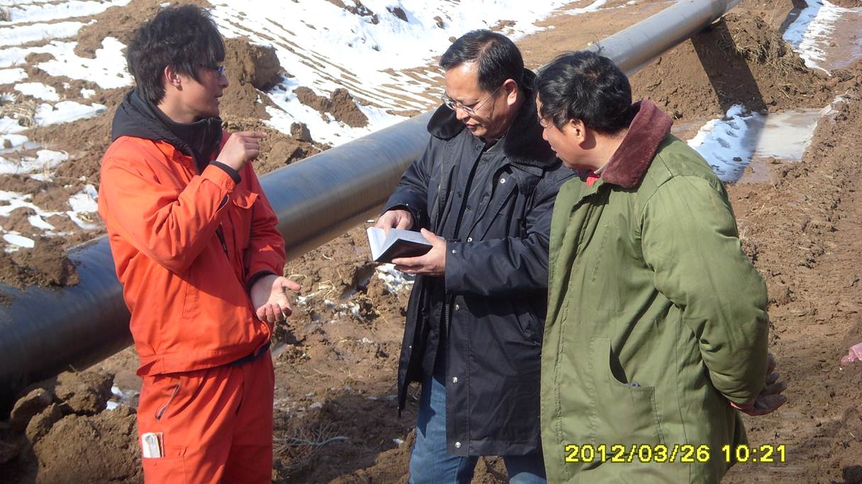監理人員檢查管線補口質量
