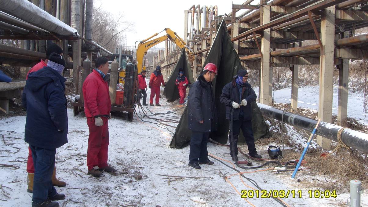 監理人員檢查管線補口質量